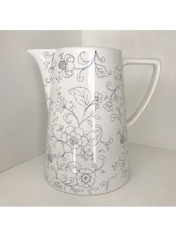 Jarra cerámica portuguesa con calco en azul